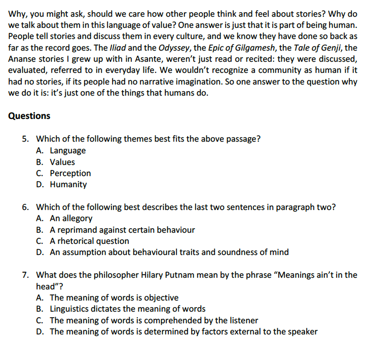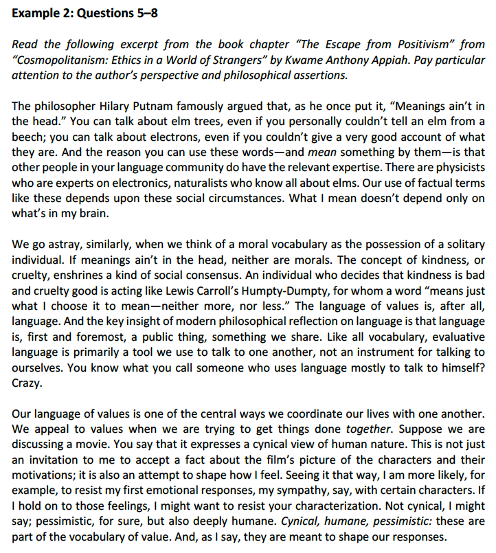 Provides clear and precise content that is exactly aiming to trigger critical analysis and reasoning skills of the candidates and does not include additional unnecessary information. - Sample passages with worked answers